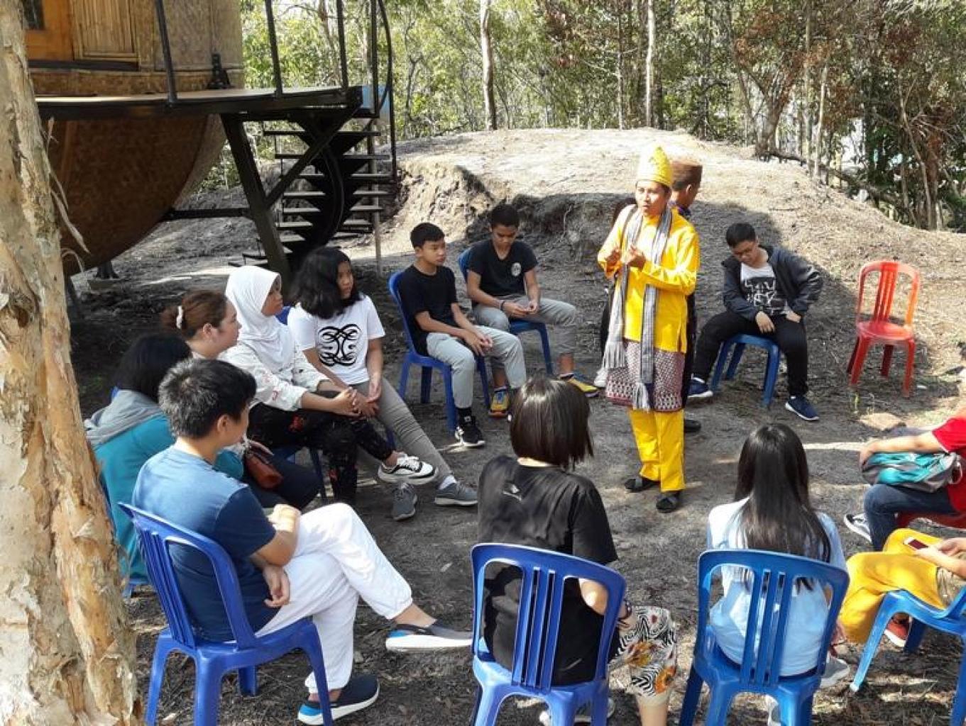 Sebagai bagian dari melestarikan dan sekaligus mengenalkan adat budaya Melayu Belitung khususnya adat dan seni Berpantun, maka aktifitas inipun menjadi bagian dari atraksi wisata edukasi yang santai dan menyenangkan. Dengan kalimat-kalimat yang tersusun rapi yang berisi nasehat-nasehat bijak sangatlah tepat di jadikan media untuk mengedukasi siswa/i sekolah yang berkunjung. Kegiatan ini biasanya dipandu oleh dua orang pemandu lokal dengan pakaian adat Melayu Belitung dan dilakukan di alam terbuka. Tak lupa peserta selalu disuguhkan minuman welcome drink dan snack khas Desa Wisata Kreatif Terong.