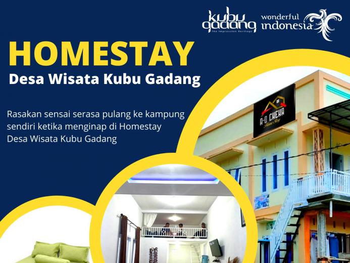 Diantara persawahan tersebutlah berdiri sejumlah rumah yang sebagiannya difungsikan sebagai homestay. Saat ini Desa Wisata Kubu Gadang telah memiliki 20 homestay. Jumlah homestay terus bertumbuh sebagai bukti kesadaran masyarakat untuk menjadikan rumah mereka sebagai salah satu sumber peningkatan ekonomi keluarga. Hal ini sekaligus membuktikan bahwa sadar wisata menjadi sebuah kesadaran yang semakin hari semakin merata dirasakan masyarakat. Sejak berdiri sebagai Desa Wisata pada 2014 lalu, hingga kini homestay-homestay di Kubu Gadang makin menyempurnakan fasilitas dan pelayanan oleh pengelolanya. Buah dari penyempurnaan itu, akhirnya pada tahun 2021, homestay-homestay yang ada di Desa Wisata Kubu Gadang berhasil memperoleh sertifikat CHSE dengan nomor sertifikat CHSE03792/2021.