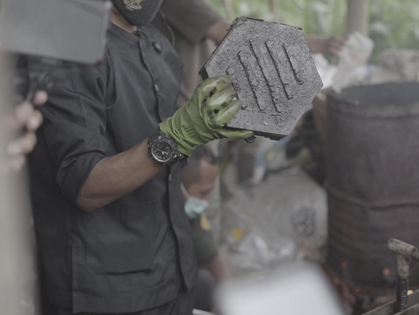 Pengolahan Paving Block ini adalah inisiatif dari bumdes dan warga setempat, pengolahan ini memanfaatkan dari limbah plastik