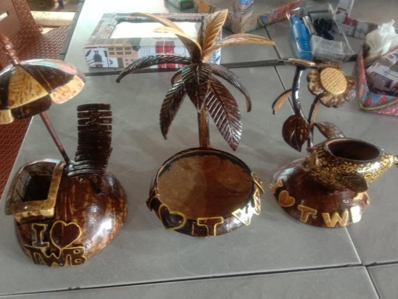 Desa Jawai Laut merupakan salah satu daerah yang ketersediaan sumber daya alamnya banyak, seperti tumbuhan kelapa, yang kemudian bahan baku pembuatan kerajinan tempurung kelapa. Ketersediaan sumber daya alam yang banyak sehingga menghasilkan ide-ide yang kreatif masyarakat setempat secara turun temurun untuk menghasilkan suatu produk yang merupakan ciri khas daerah seperti tempurung kelapa. Di Desa Jawai Laut masih terdapat perajin kerajinan dari tempurung kelapa walaupun sebagai pekerjaan sampingan untuk membantu kebutuhan ekonomi keluarga. Kerajinan yang biasa dihasilkan oleh perajin adalah gantungan kunci, asbak rokok, mangkuk.